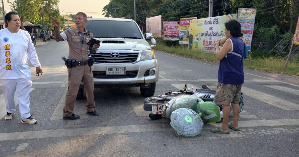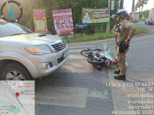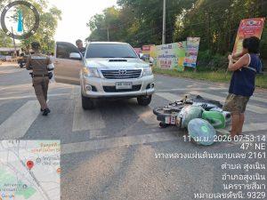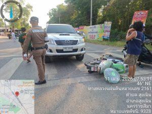 อุบัติเหตุรถเฉี่ยวชนกัน บริเวณ 4 แยกไฟแดงวัดป่า เบื้องต้น เป็นรถจักรยานยนต์เลี้ยวตัดหน้ารถยนต์ปิคอัพ บริเวณสี่แยกไฟแดงวัดป่า เมีผู้บาดเจ็บเล็กน้อยเป็นหญิง ผู้ขับขี่รถจักรยานยนต์