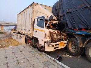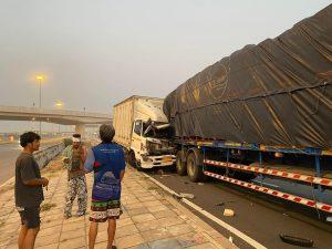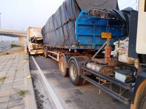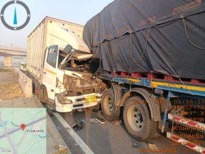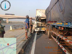 ตรวจสอบเบื้องต้นเป็นรถบรรทุกสิบล้อชนท้ายรถบรรทุกเทเลอร์ / มีผู้บาดเจ็บเล็กน้อย 1 รายมูลนิธิสว่างแสงธรรมนำส่งโรงพยาบาลสูงเนิน