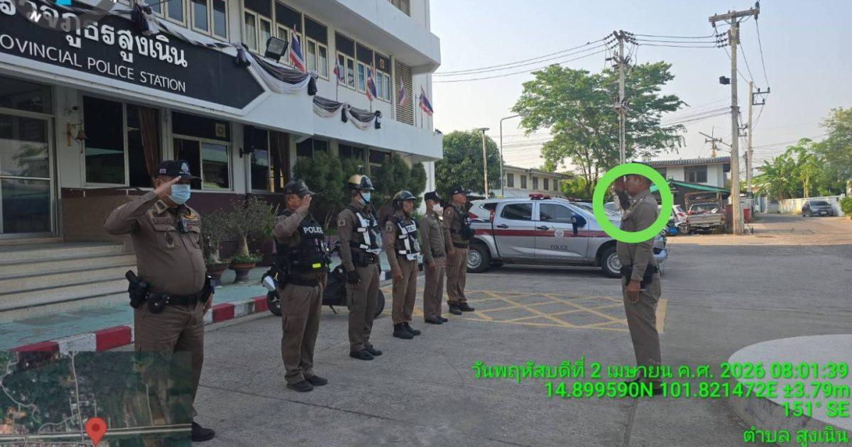 ประจำวันที่ 2 เม.ย. 2569 เวลา 07.45 น. พ.ต.ท.เสรี อินคง สวป.สภ.สูงเนิน พร้อมด้วย ร.ต.อ.วันชัย บิงกระโทก รอง สวป.ฯ,ร้อยเวร 2-0