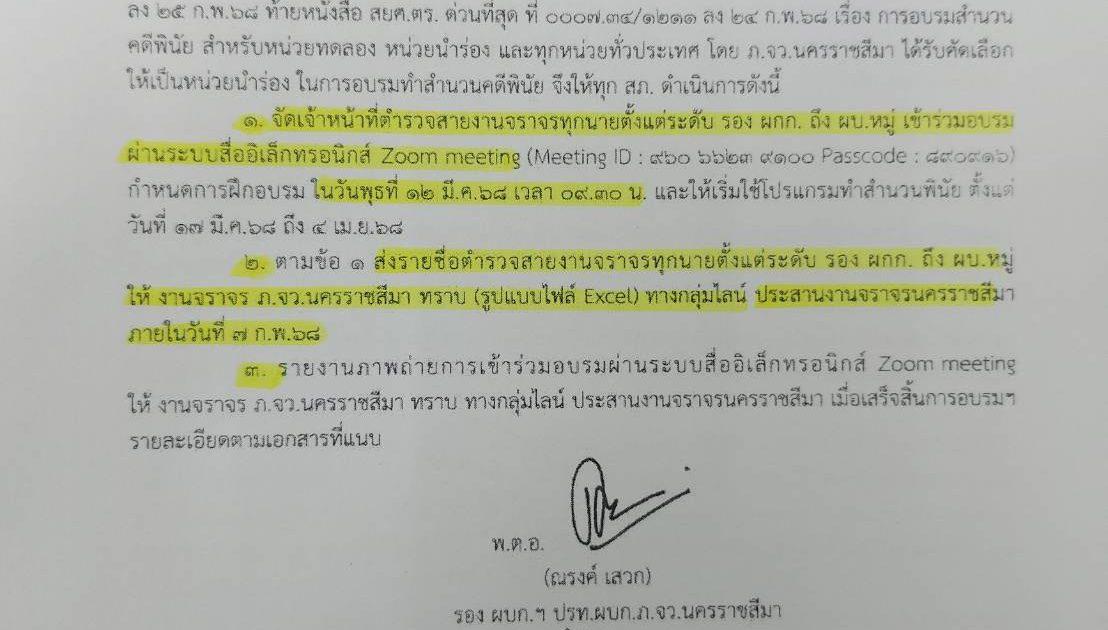 – จัดเจ้าหน้าที่ตำรวจสายงานจราจรทุกนายตั้งเเต่ระดับ รอง ผกก.- ผบ.หมู่ เข้าร่วมอบรมผ่านระบบ Zoom ในวันที่ 12 มี.ค.68 เวลา 09.30 น.