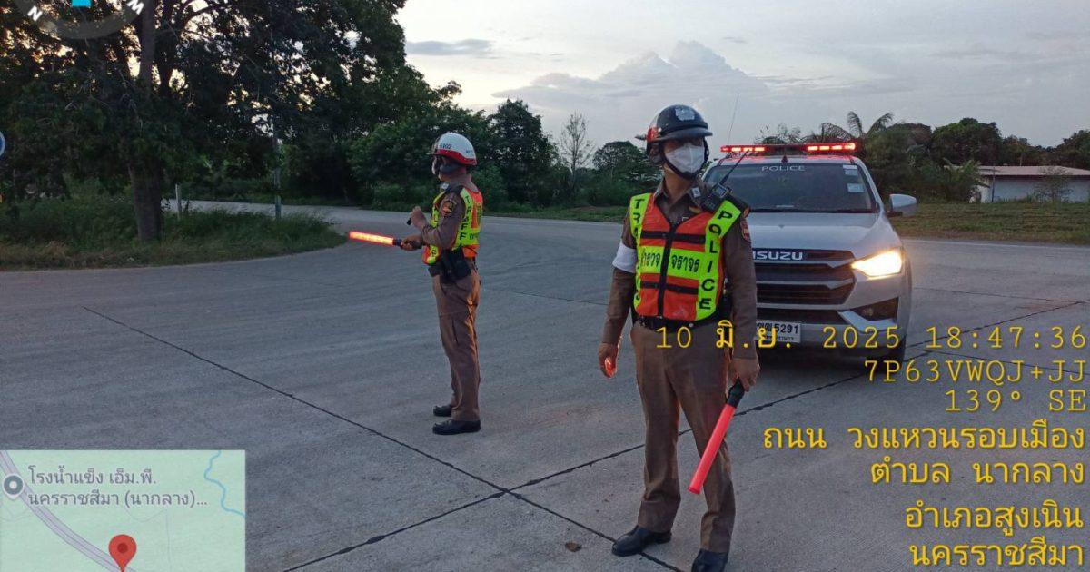 วันนี้ 10 มินายน 2568 เวลาประมาณ 18.50 น. ร.ต.ท.สมบัติ อัคเสริญ รอง สว.(ป) สภ.สูงเนิน ปฏิบัติหน้าที่ร้อยเวรจราจร (สน.60) พร้อมชุดจราจร ตรวจถนนบายพาสนากลาง 290