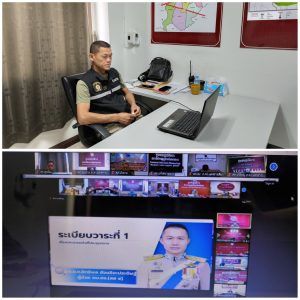 พ.ต.ต.สรายุทธ ทรายตะคุ สว.สส.สภ.สูงเนิน พร้อมเจ้าหน้าที่ เฝ้าฟังการประชุมทางไกล ผ่านระบบ Zoom