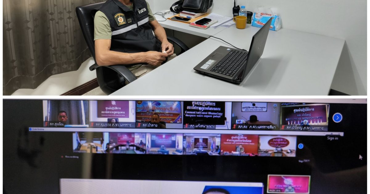 พ.ต.ต.สรายุทธ ทรายตะคุ สว.สส.สภ.สูงเนิน พร้อมเจ้าหน้าที่ เฝ้าฟังการประชุมทางไกล ผ่านระบบ Zoom
