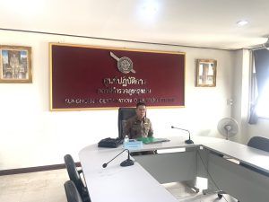 พ.ต.อ.ศุภวัชร อังคสยาวัฒน์ ผกก.สภ.สูงเนิน เฝ้าฟังการประชุมศูนย์อำนวยการป้องกันและลดอุบัติเหตุทางถนนช่วงเทศกาลสงกรานต์ พ.ศ.2567 ผ่านระบบ zoom ณ ห้องประชุม ศปก.สภ.สูงเนิน