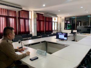 พ.ต.อ.อิษฏ์ บุญญะฤทธิ์ ผกก.สภ.สูงเนิน เฝ้าฟังการประชุมเตรียมความพร้อมการอำนวยความสะดวกด้านการจราจรป้องกันและลดอุบัติเหตุทางถนน ช่วงเทศกาลสงกรานต์ ผ่านระบบ ZOOM ณ ห้องประชุม สภ.สูงเนิน