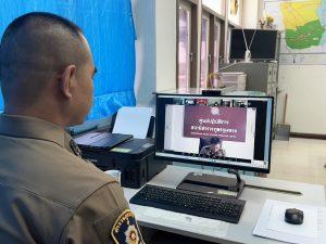 เฝ้าฟังการประชุมแข่งรถในทางผ่านระบบการประชุมทางไกล ห้องประชุมZoom2 ณ ห้องปฏิบัติการป้องกันปราบปราม สภ.สูงเนิน