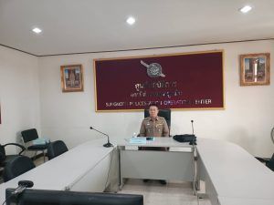 พ.ต.อ.ศุภวัชร อังคสยาวัฒน์ ผกก.สภ.สูงเนิน เฝ้าฟังการประชุม ศูนย์อำนวยการป้องกันและลดอุบัติเหตุช่วงสงกรานต์ฯ กับ ภ.จว.นครราชสีมา /ภ.3/ ตร. ผ่านระบบประชุมทางไกล ZOOM ณ ศปก.สภ.สูงเนิน
