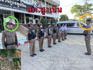 พ.ต.ท.เสรี อินคง สวป.สภ.สูงเนิน ได้เรียกแถวสายตรวจเพื่อเคารพธงชาติพร้อมอบรมปล่อยแถวสายตรวจและชี้แจงข้อราชการ ข้อสั่งการ