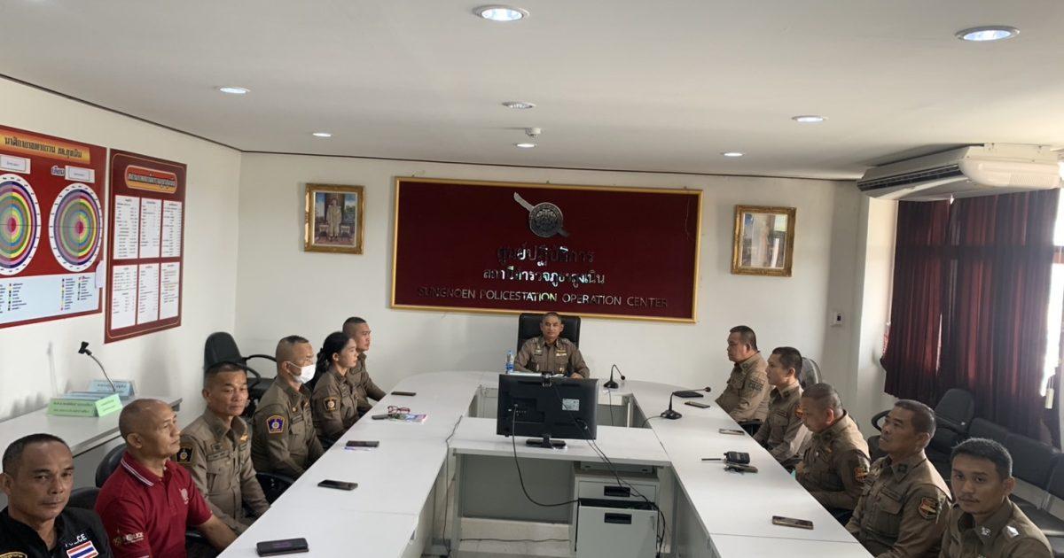 พ.ต.ท.ญาณวุฒิ ชินทุมพงษ์ สวป.สภ.สูงเนิน พร้อมเจ้าหน้าที่ เฝ้าฟังการประชุม การเก็บข้อมูล กองทุนหมู่บ้านและชุมชนเมือง ผ่านระบบ telegram ณ ห้องประชุม สภ.สูงเนิน