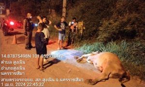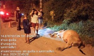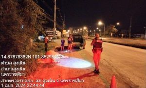 วันที่ 1 เม.ย.2567 เวลา 22.50 น. จยย.011 ว.4 เหตุวัวตกจากรถบรรทุกเหตุเกิดที่หน้าบริษัท ซีเกททางคู่ขนานขาเข้า กทม.เป็นวัวเพศเมียท้องแก่ใกล้คลอดได้ประสานงานกับผู้ช่วย ผญบ. (นายบุญเชิด โฉสูงเนิน)บ้านบุหิน ม.9 ต.สูงเนิน ฯ นำรถยนต์มาใส่นำไปเก็บรักษาในที่ปลอดภัยและลงบันทึกประจำวันที่ สภ.สูงเนิน