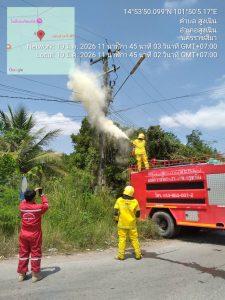 จยย.เขต 1 ว.4 เหตุไฟไหม้สายไฟฟ้า สามเเยกไปปราสาทเมืองแขก ถ.ยุทธศาสตร์ แจ้งให้ดับเพลิง และการไฟไฟฟ้าดำเนินการ