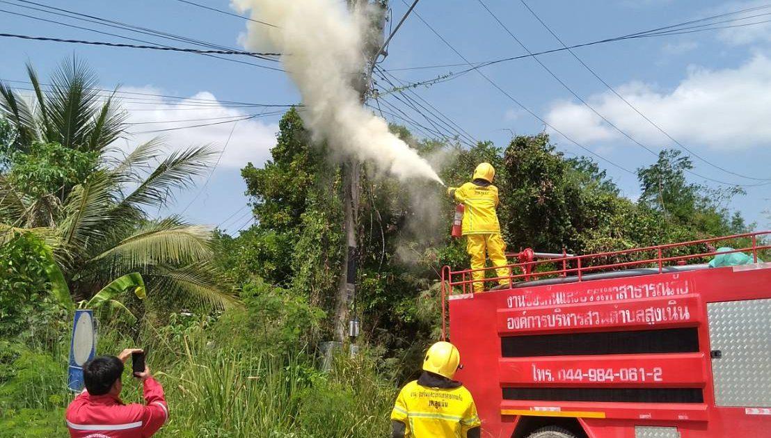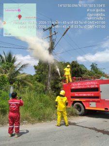 จยย.เขต 1 ว.4 เหตุไฟไหม้สายไฟฟ้า สามเเยกไปปราสาทเมืองแขก ถ.ยุทธศาสตร์ แจ้งให้ดับเพลิง และการไฟไฟฟ้าดำเนินการ