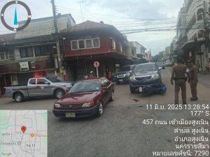 วันนี้( 11 มิ.ย.2568) เวลา 13.15 น.ได้รับแจ้งจากศูนย์วิทยุ สภ.สูงเนินว่ามีเหตุ ว.40 รถยนต์เชี่ยวชนรถจักรยานยนต์ เหตุเกิดที่ สี่แยกทางรถไฟสูงเนิน ถ.มิตรสัมพันธ์ มีผู้ได้บาดเจ็บ จำนวน 2 ราย รถกู้ภัยนำส่ง รพ.สูงเนิน มีท่าน สน 2 พร้อมด้วย สน3-0,สน 6-0,จราจรเวรฯและพลขับ3-0 ร่วมกัน ว.4เหตุ ว.40ดังกล่าว ได้จัดการจราจรและเปิดเส้นทางจราจรได้ตามปกติ ส่วน สน3-0ดำเนินการตามกฎหมายที่เกี่ยวข้องต่อไป