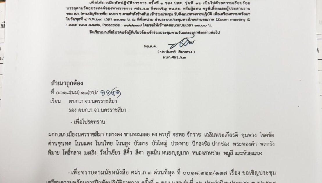 เเจ้งขอเชิญประชุม เตรียมความพร้อมการฝึกหัดปฏิบัติราชการ ครั้งที่ 1 ของ นสต.รุ่นที่ 16 ประจำปีงบประมาณ พ.ศ.2567