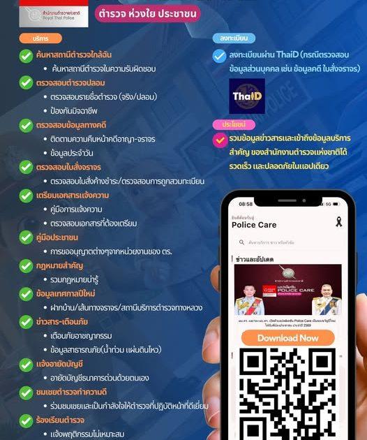 เเจ้งประชาสัมพันธ์ข้าราชการตำรวจ และครอบครัว บุคคลทั่วไป เพื่อดาวโหลดแอพลิเคชั่น “POLICE CARE ตำรวจห่วงใยประชาชน” เพื่อประโยชน์ด้านข้อมูลข่าวสารและเข้าถึงข้อมูลบริการสำคัญของสำนักงานตำรวจเเห่งชาติ