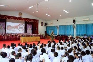 สภ.สูงเนิน ภ.จว.นม. วันนี้ 30 พฤษภาคม 2568 เวลา 13:00 น เนื่องในวันงดสูบบุหรี่โลก ๓๑ พฤษภาคม ของทุกปี นำโดยท่าน ดร.พิเชษฐ์ โคนกระโทก ผู้อำนวยการโรงเรียนระดมวิทยานุสรณ์ เป็นผู้ดำเนินจัดโครงการฯ ได้นำคณะครูและนักเรียนโรงเรียนระดมวิทยานุสรณ์ จัดกิจกรรมเดินรณรงค์ วันงดสูบบุหรี่โลก World No Tobacco Day และรับการอบรมจากสถานีตำรวจภูธรสูงเนิน โดย พ.ต.อ.อิษฏ์ บุญญะฤทธิ์ ผกก.สภ.สูงเนิน มอบหมายให้ ร.ต.ท.สมบัติ อัคเสริญ รอง สว.(ป.)สภ.สูงเนิน อบรมบรรยายตามโครงการป้องกันและแก้ไขปัญหายาเสพติด โดยเฉพาะบุหรี่ไฟฟ้า เพื่อกระตุ้นสร้างความตระหนักรู้ถึงพิษภัยของบุหรี่ให้กับคณะครู นักเรียน ผ่านการดำเนินงานตามโครงการระบบดูแลช่วยเหลือนักเรียนและโครงการสถานศึกษาสีขาว อย่างรอบด้านในทุกมิติ