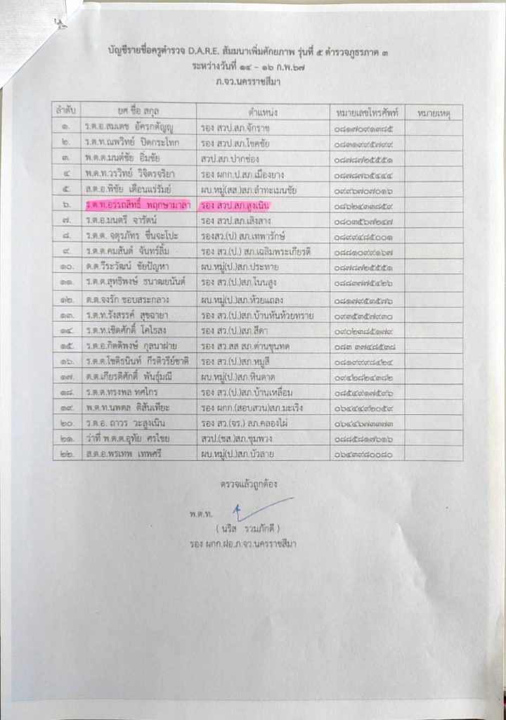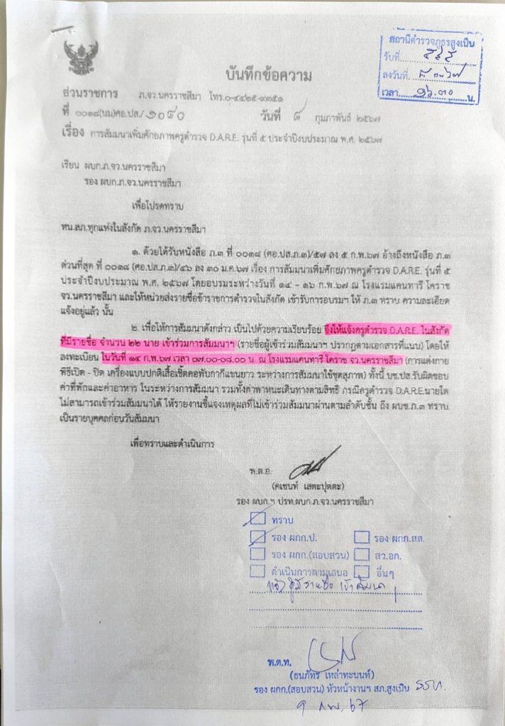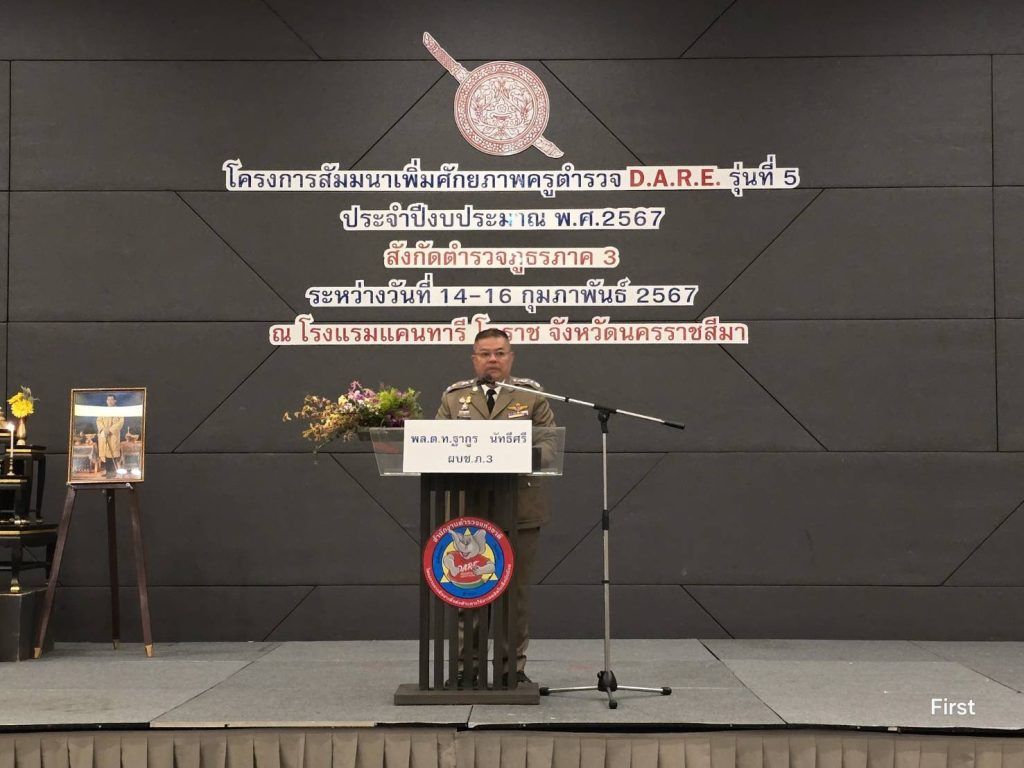 วันที่14-16 ก.พ.2567 ร.ต.ท.อรรถสิทธิ์ พฤกษามาลา รอง สวป.ฯ อบรมโครงการสัมนาเพื่มศักยภาพครูตำรวจ D.A.R.E. ณ โรวงแรมแคนทารี่โคราช จ.นครราชสีมา