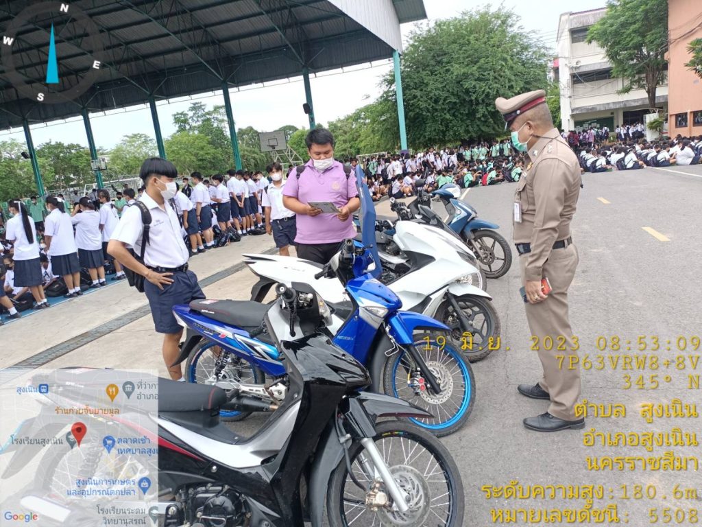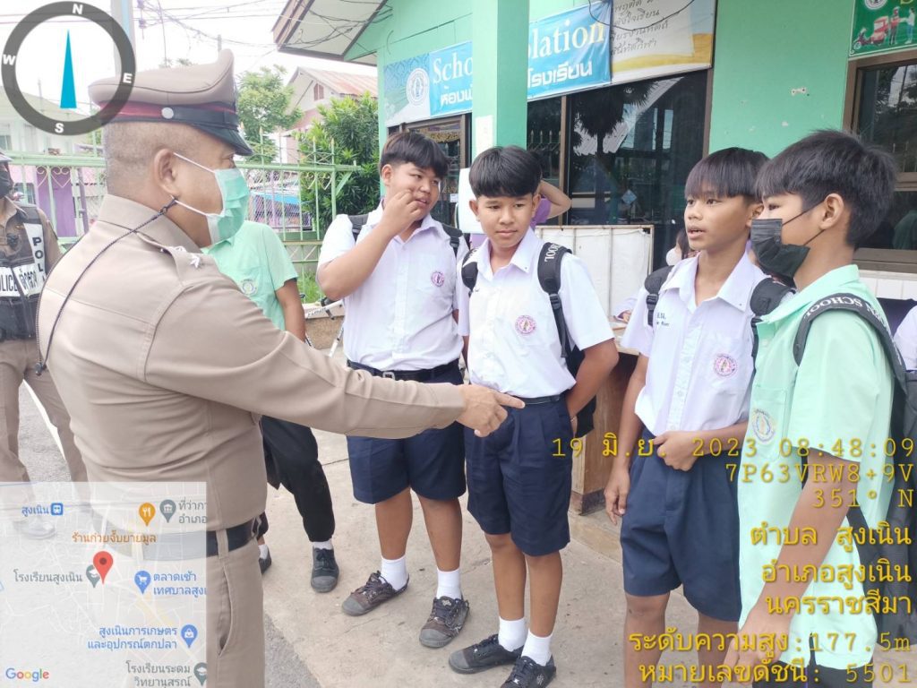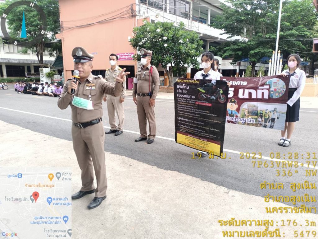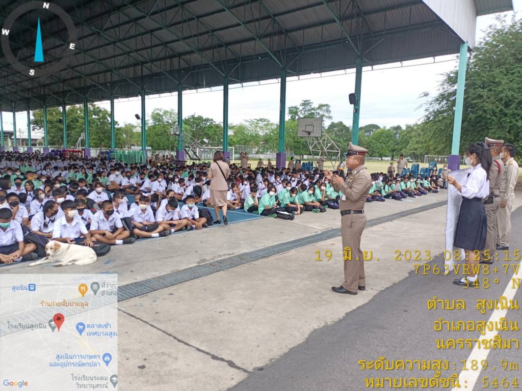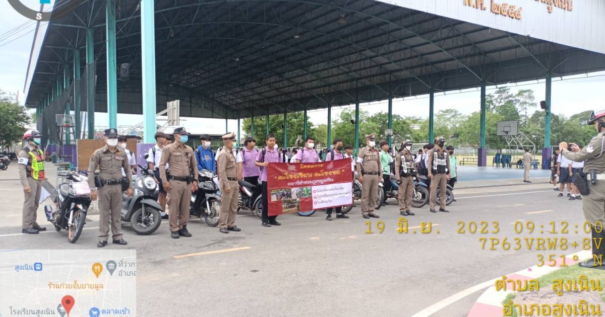 วันนี้ 19 มิ.ย 66 เวลาประมาณ 08.30 น. ภายใต้การอำนวยการของ พ.ต.อ.วทัญญู รุ่งรัศมี ผกก.สภ.สูงเนิน, พ.ต.ท.พิทักษ์ วงศ์อาจ รอง ผกก.ป.สภ.สูงเนิน มอบหมายให้ พ.ต.ท.สุระศักดิ์ พันธ์วงศ์ สวป.สภ.สูงเนิน พร้อมด้วย ร้อยเวรป้องกันปราบปรามอาชญกรรม(ร้อยเวร2-0)แสะสายตรวจรถยนต์, ร้อยเวรจราจร(ร้อยเวร6-0)และสายตรวจจราจร ได้เข้าโรงเรียนสูงเนิน ต.สูงเนิน อ.สูงเนิน จว.นครราชสีมา ให้สภ.สูงเนินเข้า เพื่อดำเนินงานโครงการดังต่อนี้