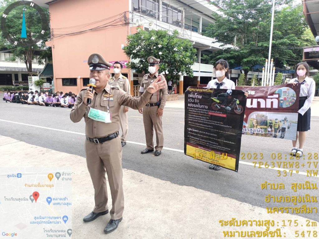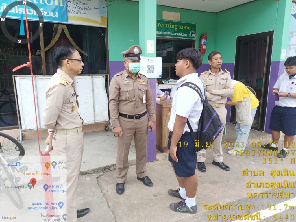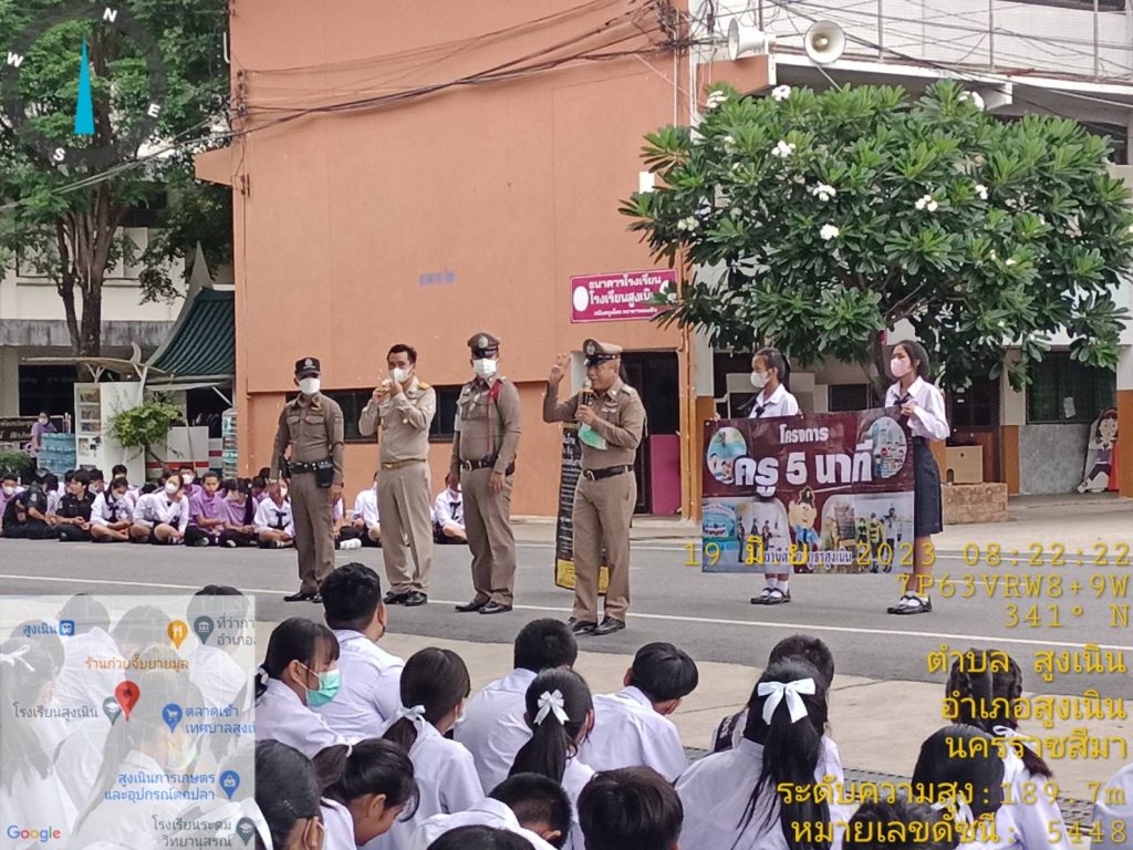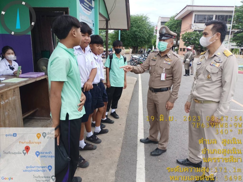วันนี้ 19 มิ.ย 66 เวลาประมาณ 08.30 น. ภายใต้การอำนวยการของ พ.ต.อ.วทัญญู รุ่งรัศมี ผกก.สภ.สูงเนิน, พ.ต.ท.พิทักษ์ วงศ์อาจ รอง ผกก.ป.สภ.สูงเนิน มอบหมายให้ พ.ต.ท.สุระศักดิ์ พันธ์วงศ์ สวป.สภ.สูงเนิน พร้อมด้วย ร้อยเวรป้องกันปราบปรามอาชญกรรม(ร้อยเวร2-0)แสะสายตรวจรถยนต์, ร้อยเวรจราจร(ร้อยเวร6-0)และสายตรวจจราจร ได้เข้าโรงเรียนสูงเนิน ต.สูงเนิน อ.สูงเนิน จว.นครราชสีมา ให้สภ.สูงเนินเข้า เพื่อดำเนินงานโครงการดังต่อนี้