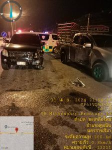 น.60 ชุดจราจร อำนวยความสะดวกด้านการจราจร เหตุ ว.40 จุดกลับรถมะม่วงหิมพานต์ ถนนมิตรภาพ ต.มะเกลือใหม่ เป็นรถบิ๊กอัพและรถเก๋ง จำนวน 3 คัน