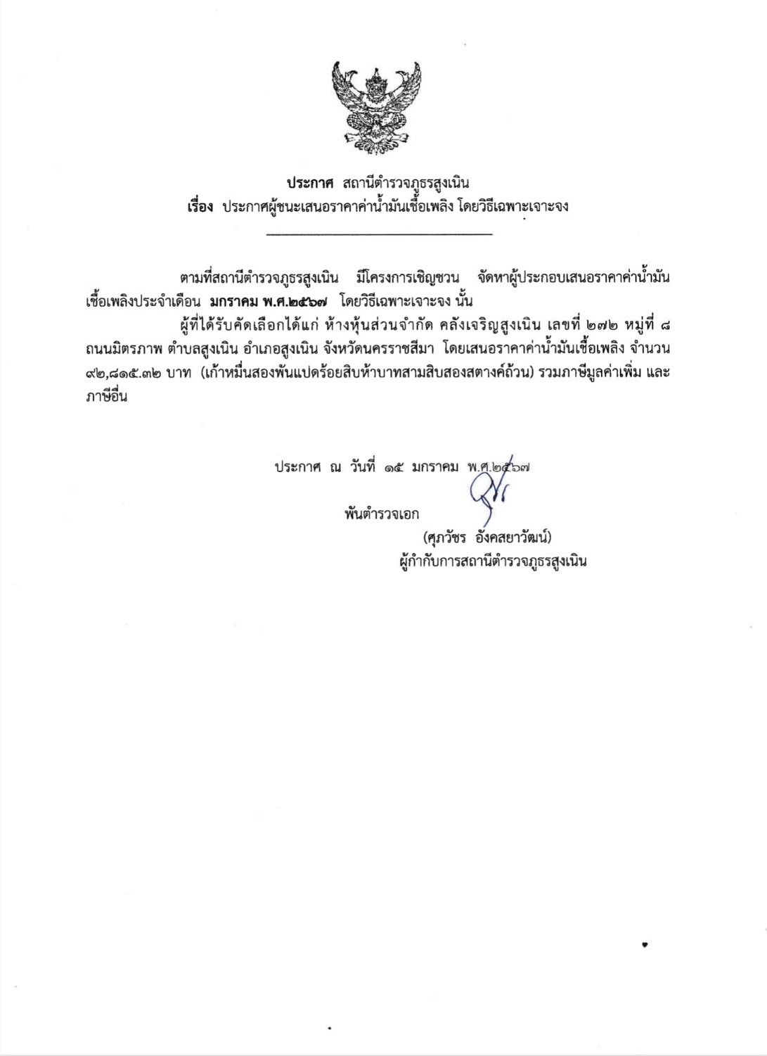 วันพุธที่ 17ม.ค.2567เวลา 19.00 น.พ.ต.อ.ศุภวัชร อังคสยาวัฒน์ ผกก.สภ.สูงเนิน,พ.ต.ท.วศิลาวุธ วงศ์ประชา