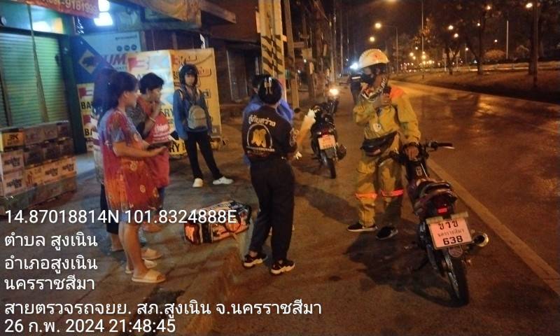 วันที่ 26 ก.พ.2567เวลาประมาณ 21.50 น. ร.ต.ต.สมชาย เคนตากแดด รอง สว.(ป.)สภ.สูงเนิน , ส.ต.อ. อภิชา พงษ