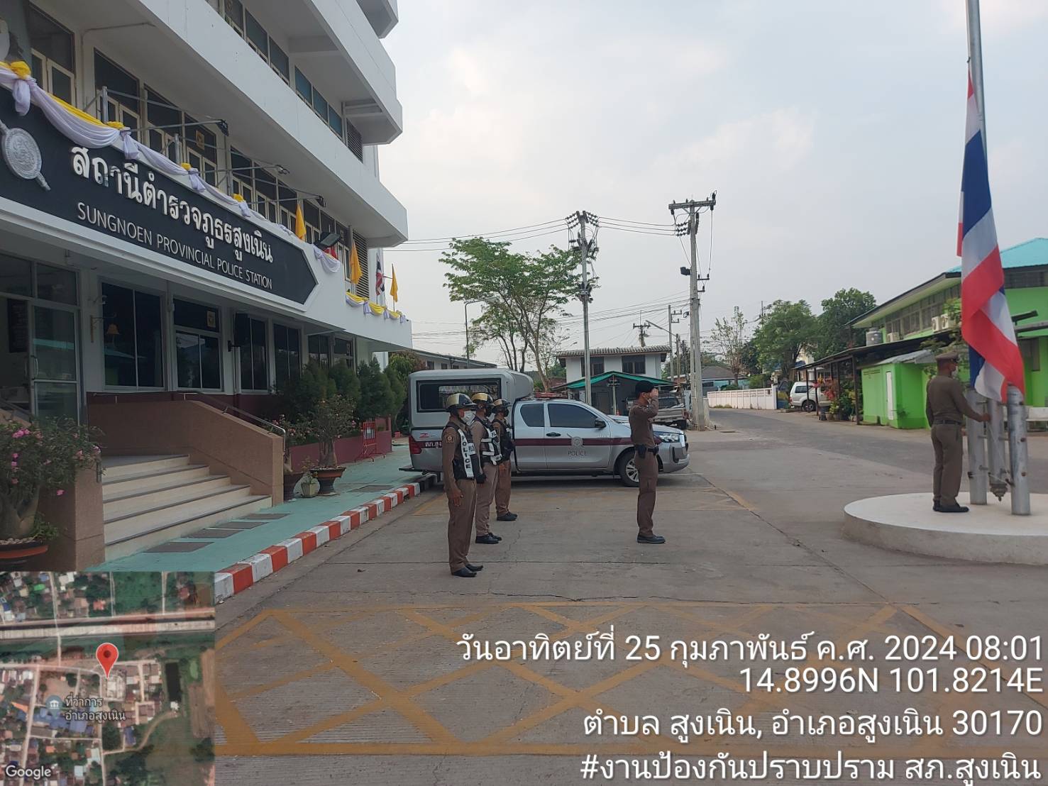 วันที่ 25ก.พ.2567 เวลา.08.00น.ร.ต.อ.ถิรายุ ปวีณ์วัฒน์ รองสวป.สภ.สูงเนินได้เรียกแถวสายตรวจ เพื่อเคารพ