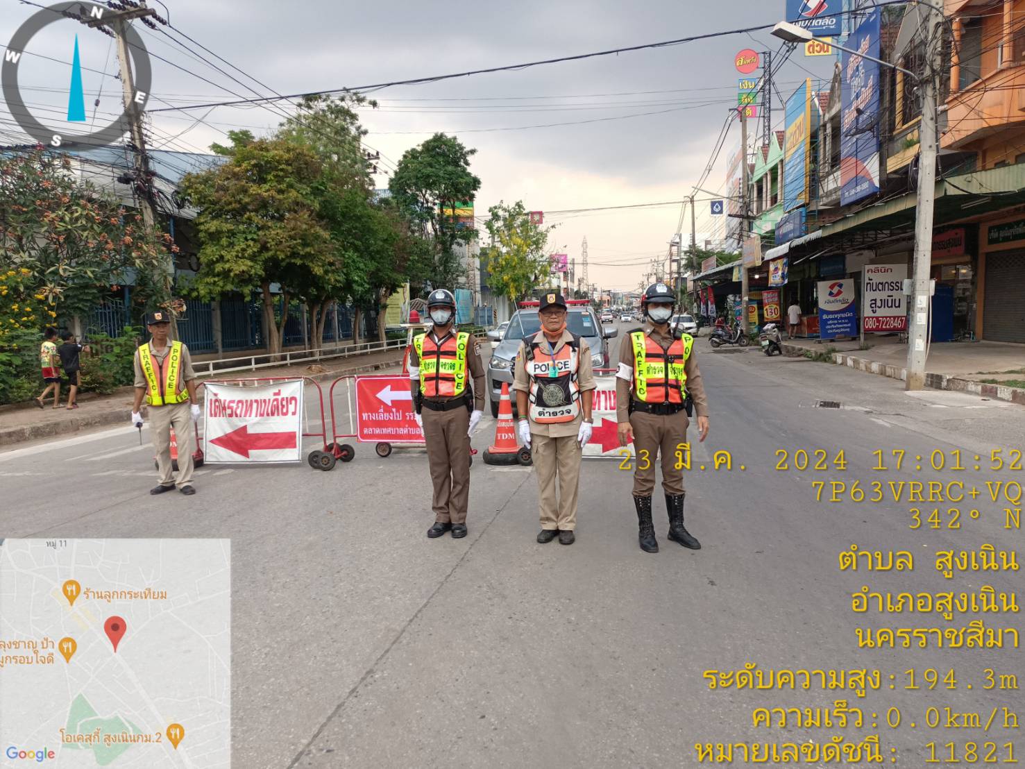 ชุดจราจร อำนวยความสะดวกด้านการจราจรและ ปิดช่องทางเดินรถขาเข้าตลาดเทศบาลสูงเนิน ณ.สี่แยกไฟแดงวัดป่าสูงเนิน