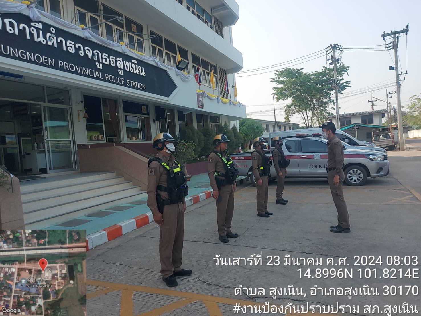 วันที่ 23 มี.ค.2567 เวลา08.00น. ร.ต.อ.ถิรายุ ปวีณ์วัฒน์ รองสวป.สภ.สูงเนิน ได้เรียกแถวสายตรวจ เพื่อเค