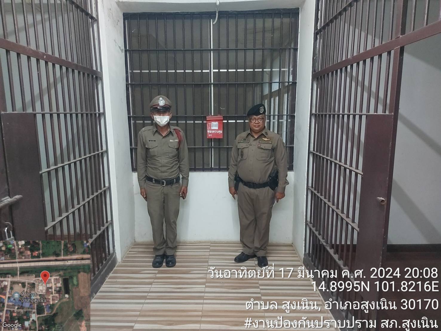 สภ.สูงเนิน วันที่ 17 มี.ค.2567 เวลา 20.10น. สูงเนิน 2-0 ตรวจห้องควบคุมผู้ต้องหา พบสิบเวรอยู่ปฏิบัติห