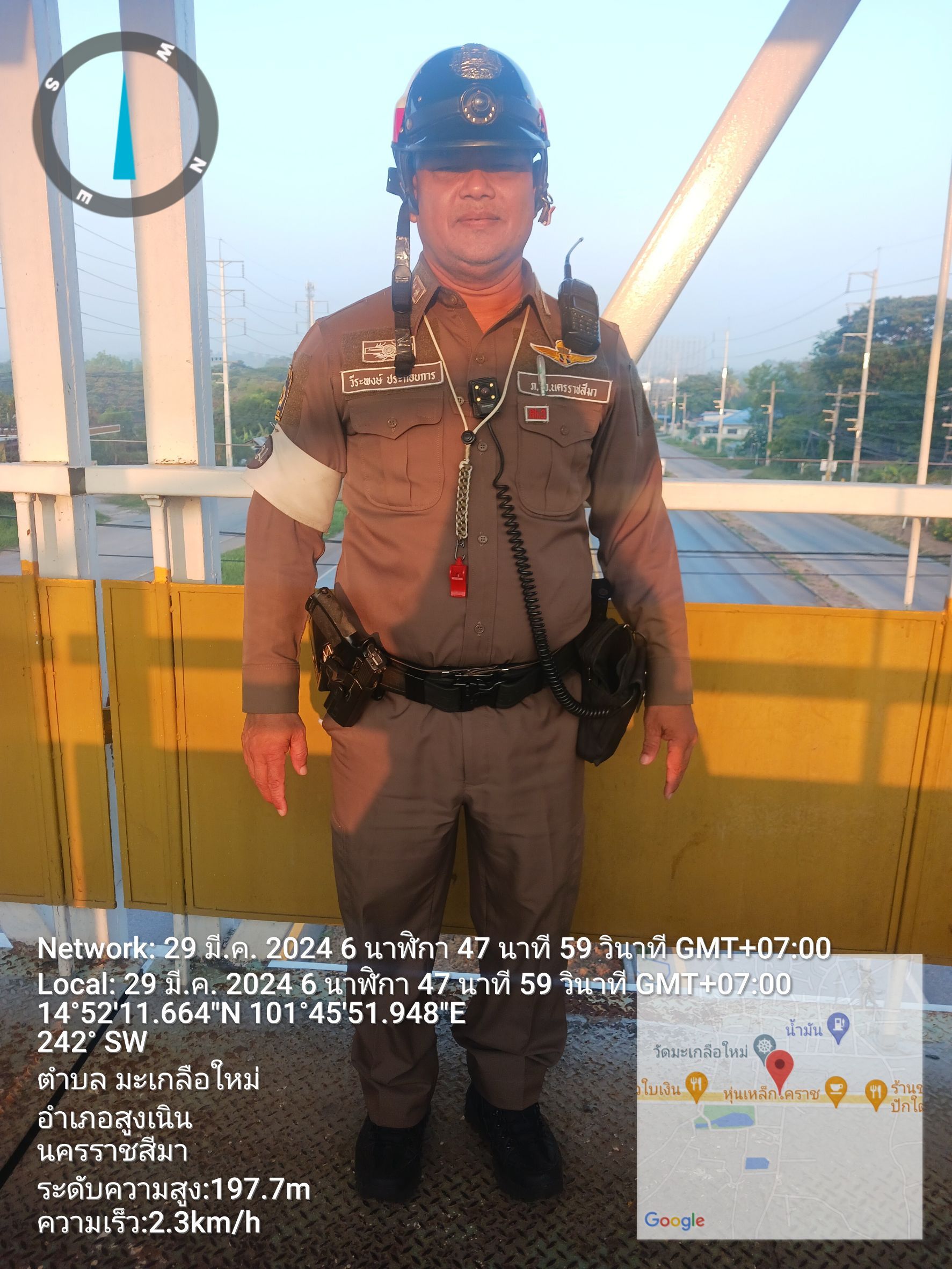 วันที่ 29 มี.ค.2567 เวลา.06.00.น. ร.ต.ท.วีระพงษ์ ประกอบการ รอง สว.(ป) สภ.สูงเนิน ปฏิบัติหน้าที่ร้อยเ