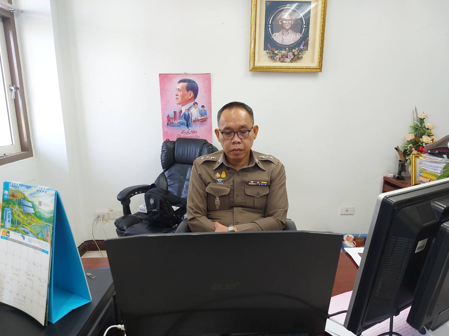 สภ.สูงเนิน วันที่ 29 มี.ค.2567 เวลา 09.00 น.พ.ต.ท.วศิลาวุธ วงศ์ประชา สว.อก.สภ.สูงเนิน เฝ้าฟังการประ