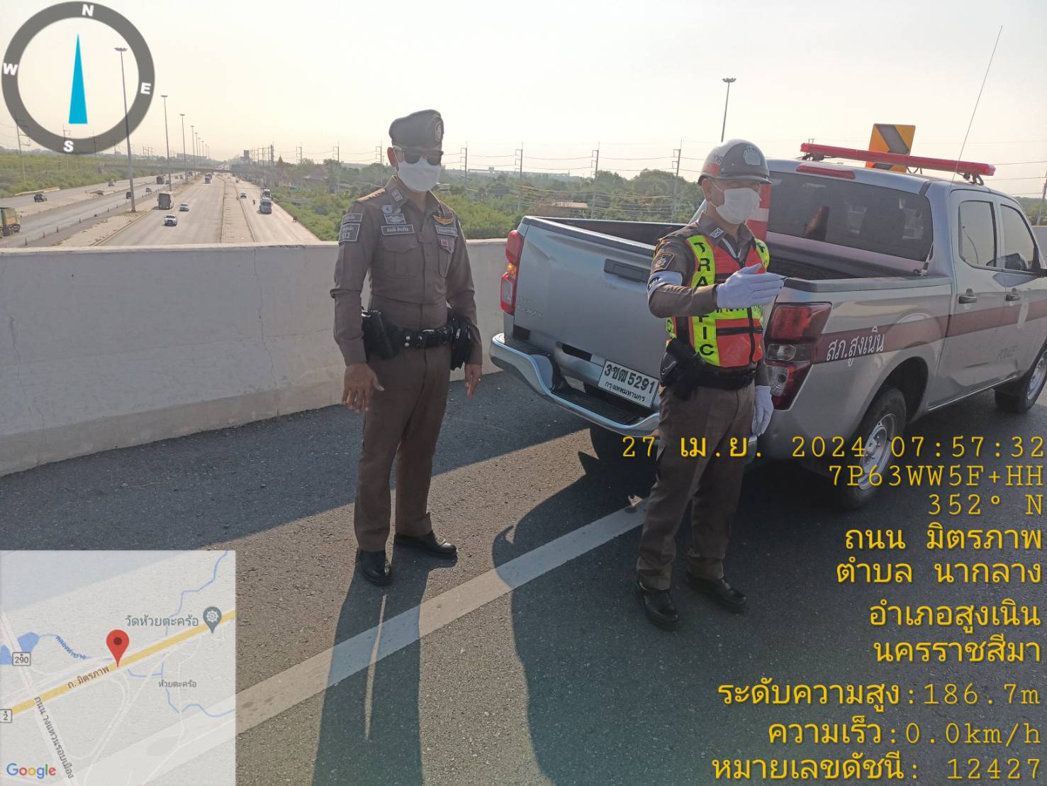 สถานีตำรวจภูธรสูงเนิน ขอรายงานถนนมิตรภาพจุดสะพานวงแหวนห้วยตะคร้อ กม.127 ในวันที่ 27 เม.ย.67 เวลาป