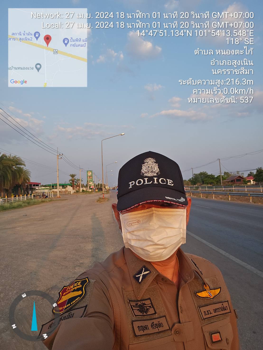 สภ.สูงเนิน ภ.จว.นม. วันที่ 27 ม.ย.67 เวลา 06.00 น. ร.ต.ท.สมบัติ อัคเสริญ รอง สว.(ป.) สภ.สูงเนิน ปฏิบ