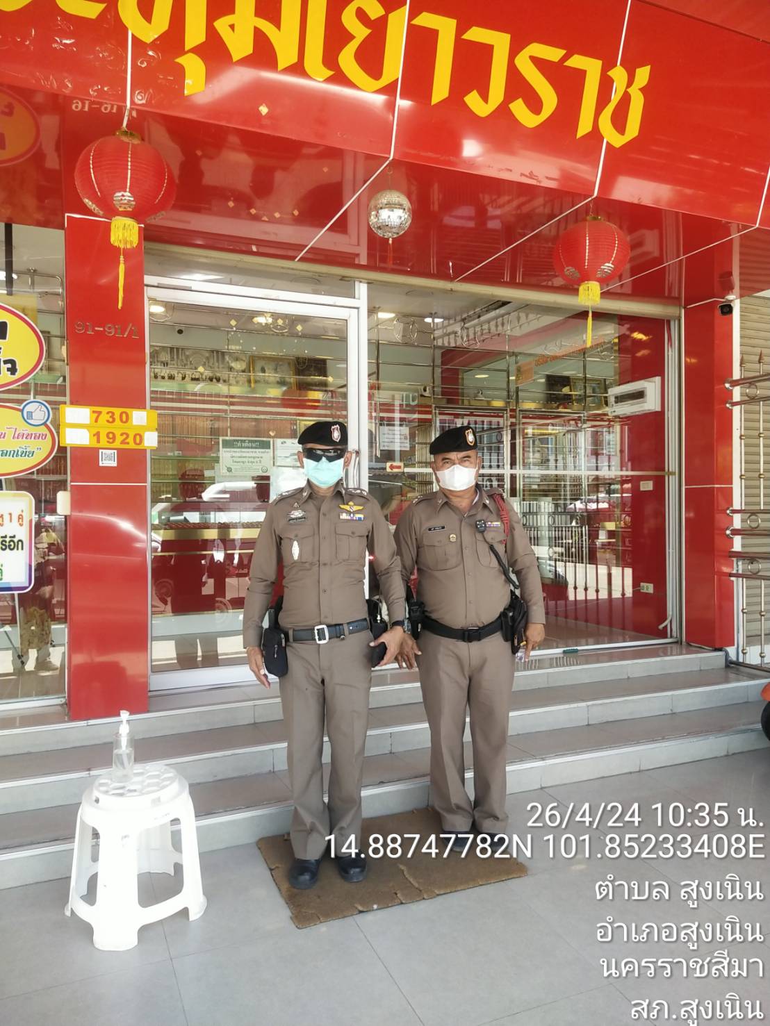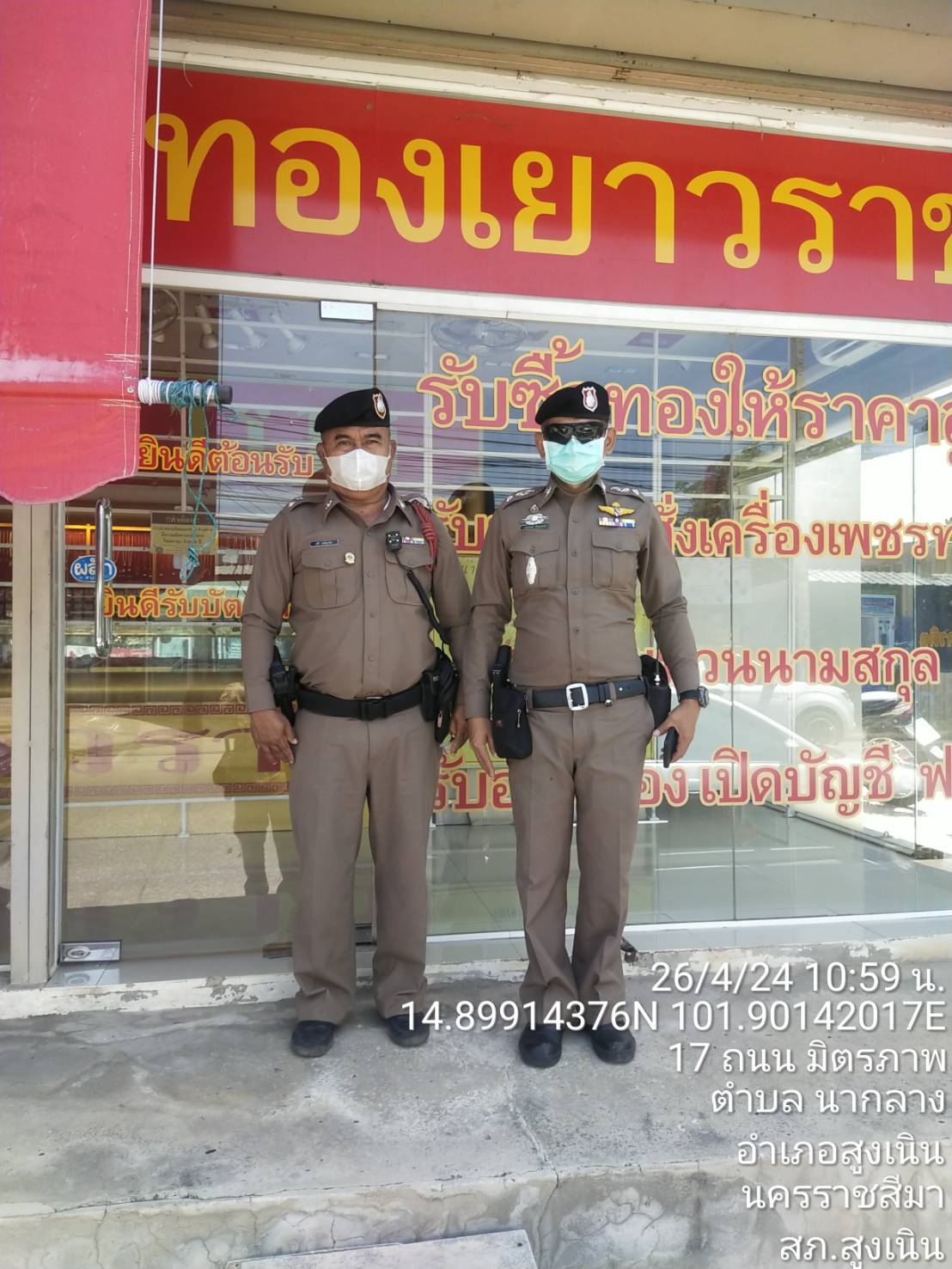 เรียน ผู้บังคับบัญชา วันนี้ 26 เม.ย. 2567 สูงเนิน 21, 20 สายตรวจรถยนต์ ว.4 ป้องกันเหตุร้านทองถนนมิต