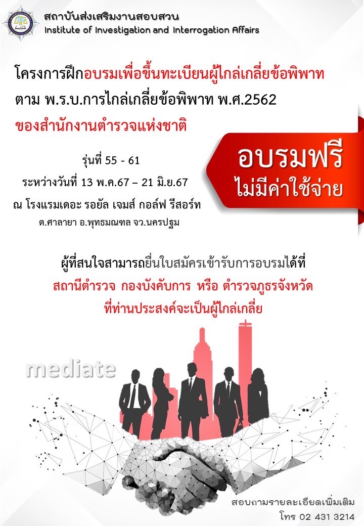 ประชาสัมพันธ์ โครงการฝึกอบรมเพื่อขึ้นทะเบียนผู้ไกล่เกลี่ยข้อพิพาทฯ