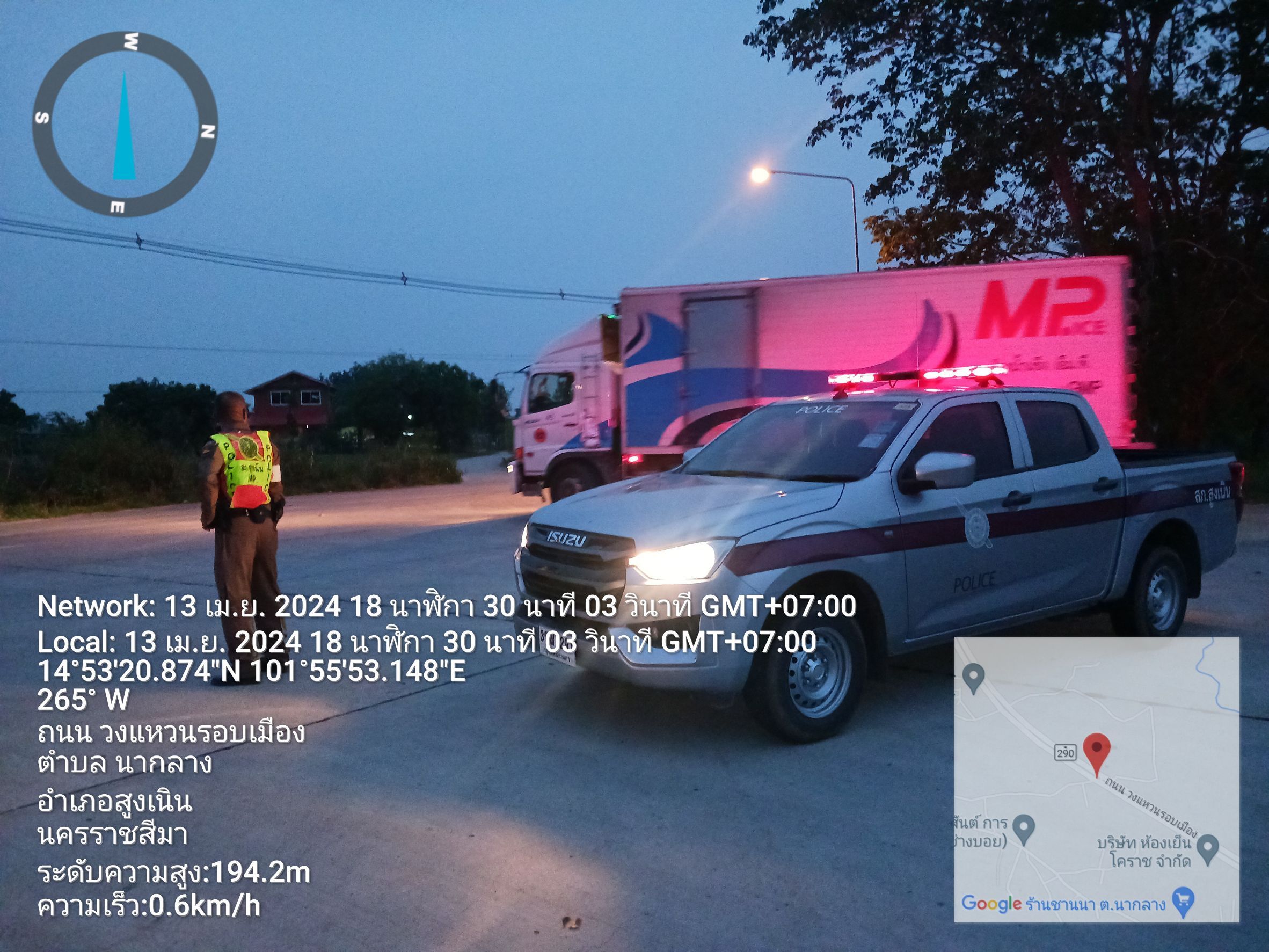 เรียน ผู้บังคับบัญชา วันนี้ 13 เมษายน.2567 เวลาประมาณ 18.29 น. สูงเนิน 60 สายตรวจจราจร ว.4 ถนนสาย ทล
