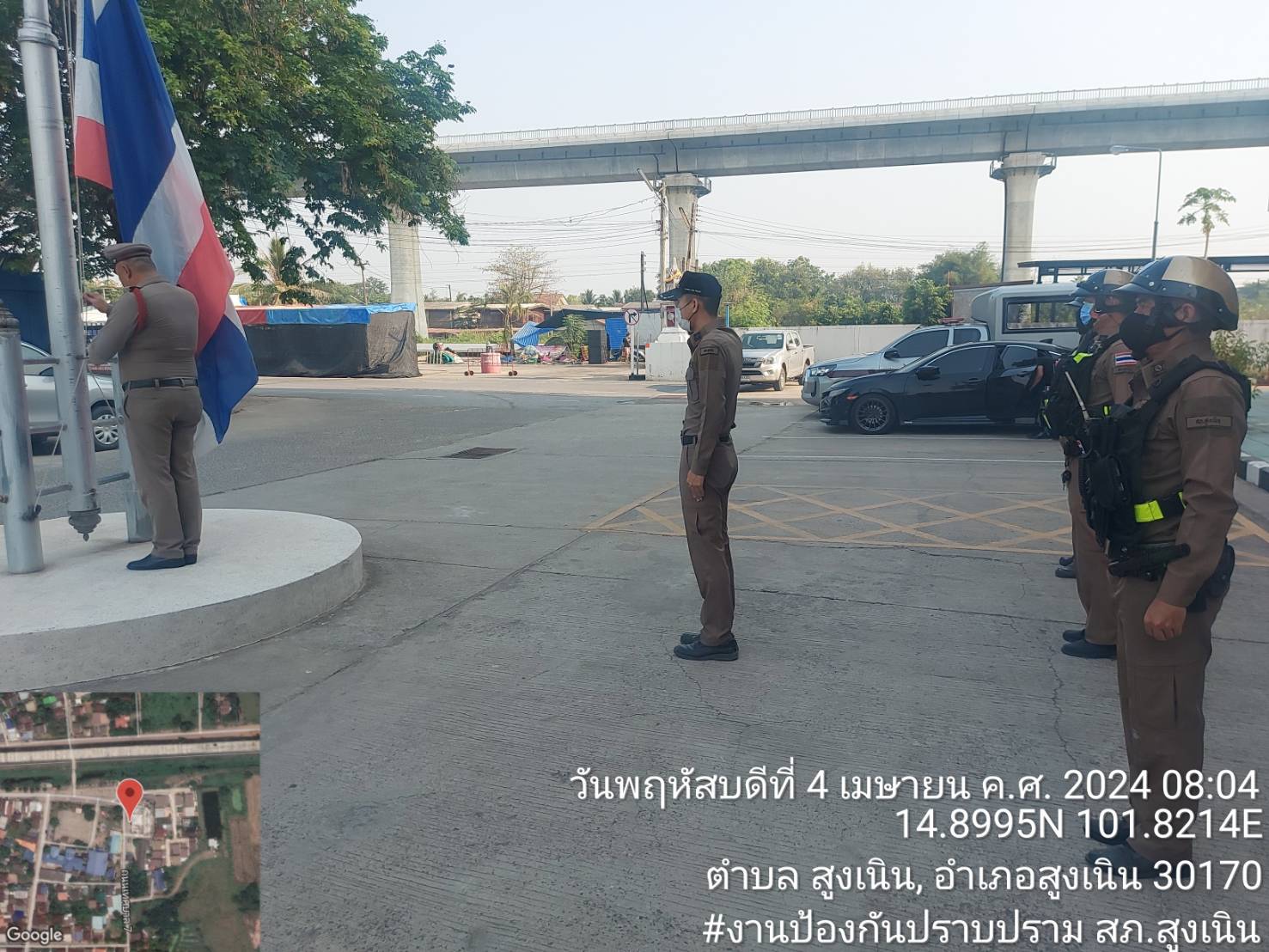 สภ.สูงเนิน ภ.จว.นครราชสีมา วันนี้ 4 เม.ย.67 เวลา.08.00น. ร.ต.อ.ถิรายุ ปวีณ์วัฒน์ รองสวป.สภ.สูงเนิน