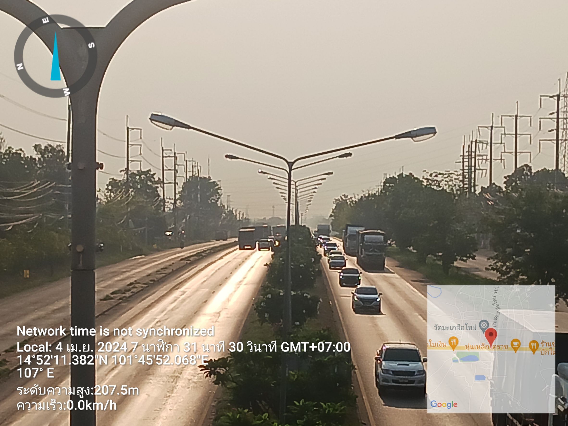 สถานีตำรวจภูธรสูงเนิน ขอรายงานสภาพการจราจรถนน มิตรภาพ จุดหน้าสะพานลอยหน้าวัดมะเกลือใหม ก.ม.ที.108+2