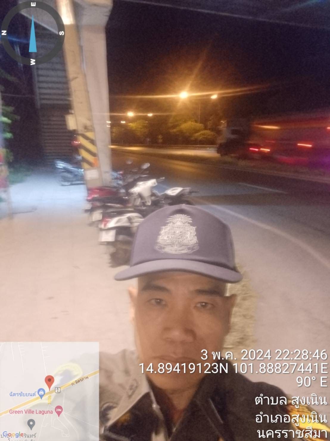 สภ.สูงเนิน ภ.จว.นม. วันที่ 3 พ.ค.67 เวลา 06.00 น. ร.ต.ท.วีระพงษ์ ประกอบการ รอง สว.(ป.) สภ.สูงเนิน ปฏ