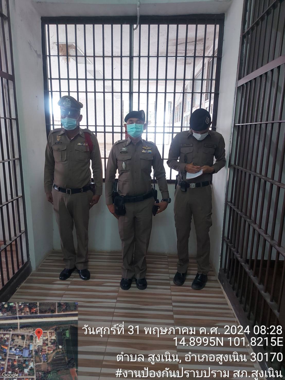 สภ.สูงเนิน วันนี้(31 พ.ค.67)เวลา08.10น.สูงเนิน21, 2-0 ตรวจห้องควบคุมผู้ต้องหา พบสิบเวรอยู่ปฏิบัติหน้