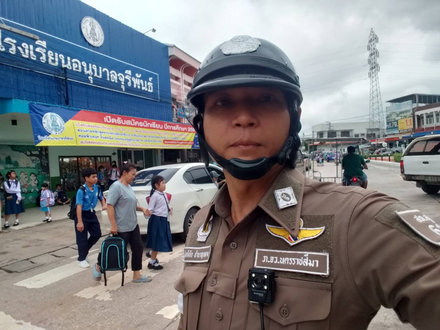 สน.6101 ว.4 อำนวยความสะดวกการจราจรหน้าโรงเรียนอนุบาลจุรีพันธ์