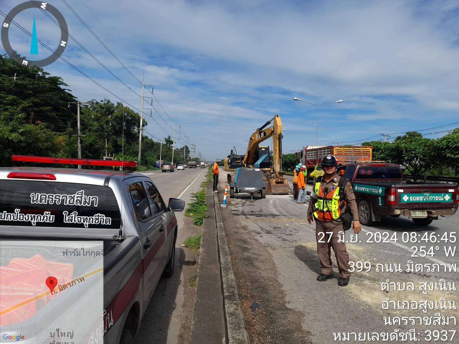 เรียน ผู้บังคับบัญชา สภ.สูงเนิน จว.นครราชสีมา ขอรายงานสภาพการจราจรที่ถนนสายมิตรภาพ บริเวณสะพานลอยบุใ