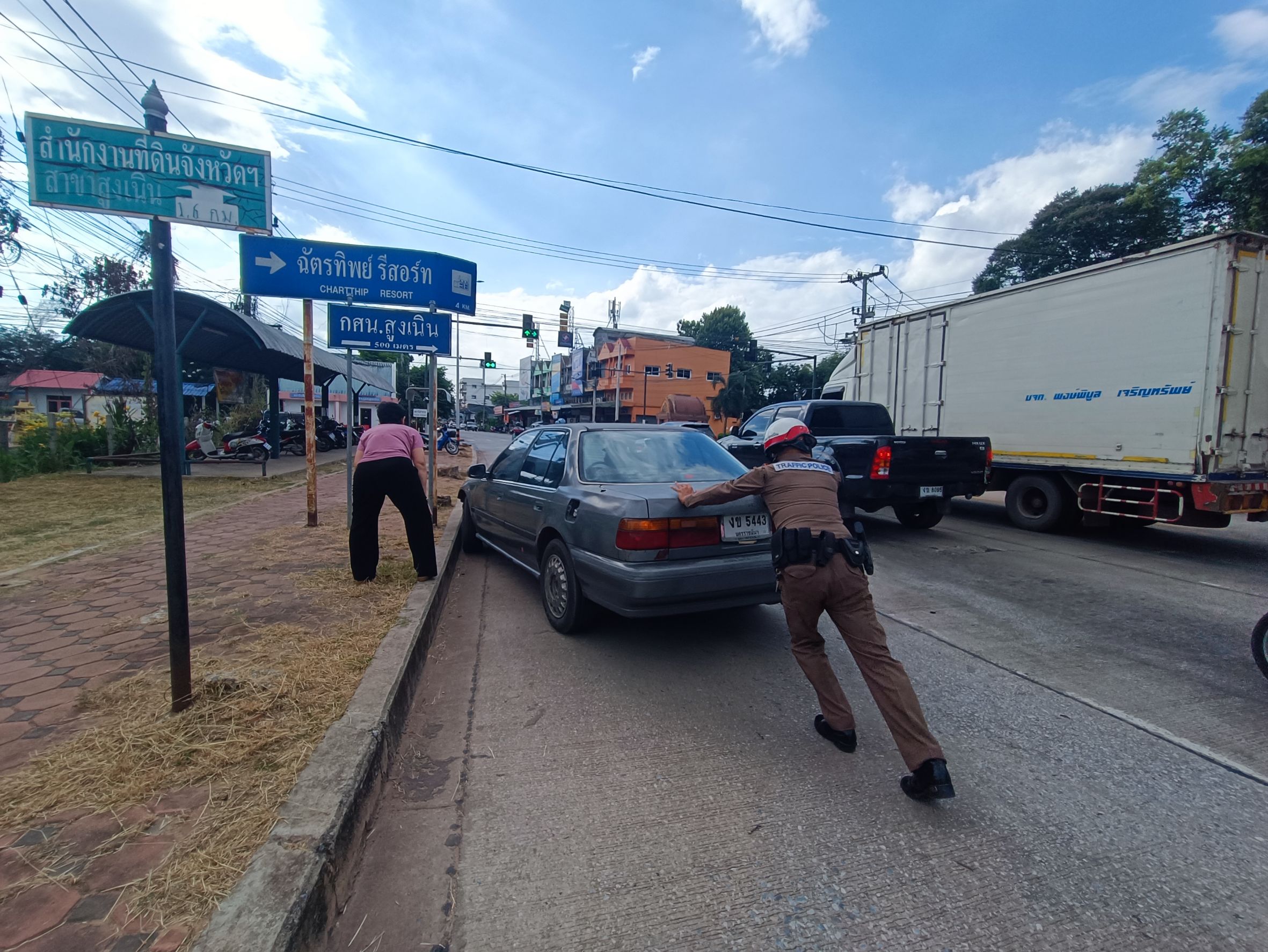 .ต.ต.ภูมิรัฐ พิสุทธิ์คุณวุธน์ สวป.(ชส.)สภ.สูงเนิน ฝ่ายปกครอง ฝ่ายสาธารณสุขอำเภอสูงเนิน พร้อมชุดปฏิบัติการชุมชนยั่งยืน ผู้ใหญ่บ้าน อสม.ได้เข้าหมู่บ้านหนองไม้ตาย