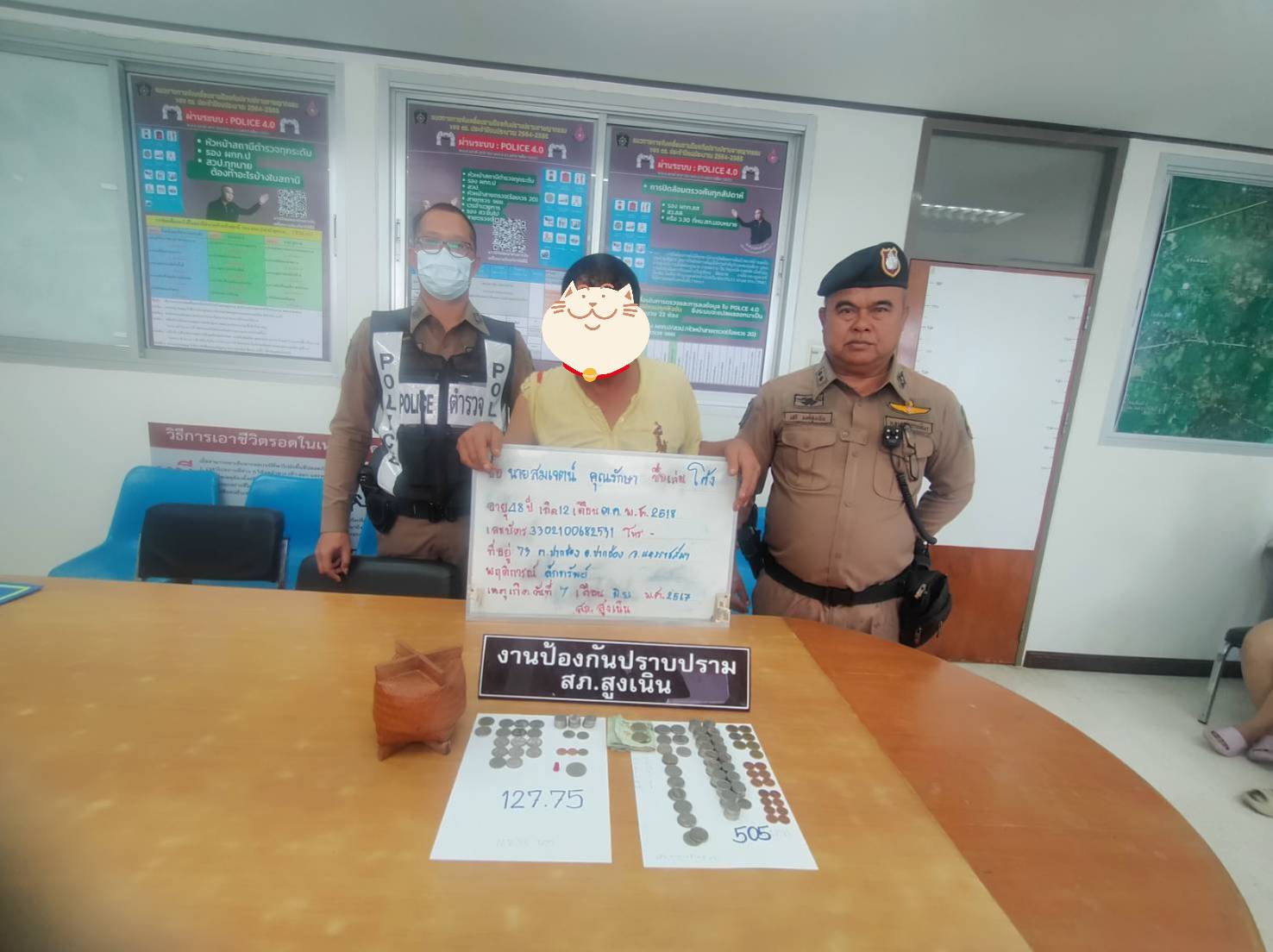 ร.ต.อ.ชูศักดิ์ รัตนพันธ์ ร้อยเวร20 พร้อมด้วย ร.ต.ต. เสรี วงศ์สูงเนิน รองสว.(ป.)และสายตรวจเขต1 ได้ร่วมกันจับกุมผู้กระทำผิดกฎหมาย ข้อหา”ลักทรัพย์(เงินสด) ผู้อื่น