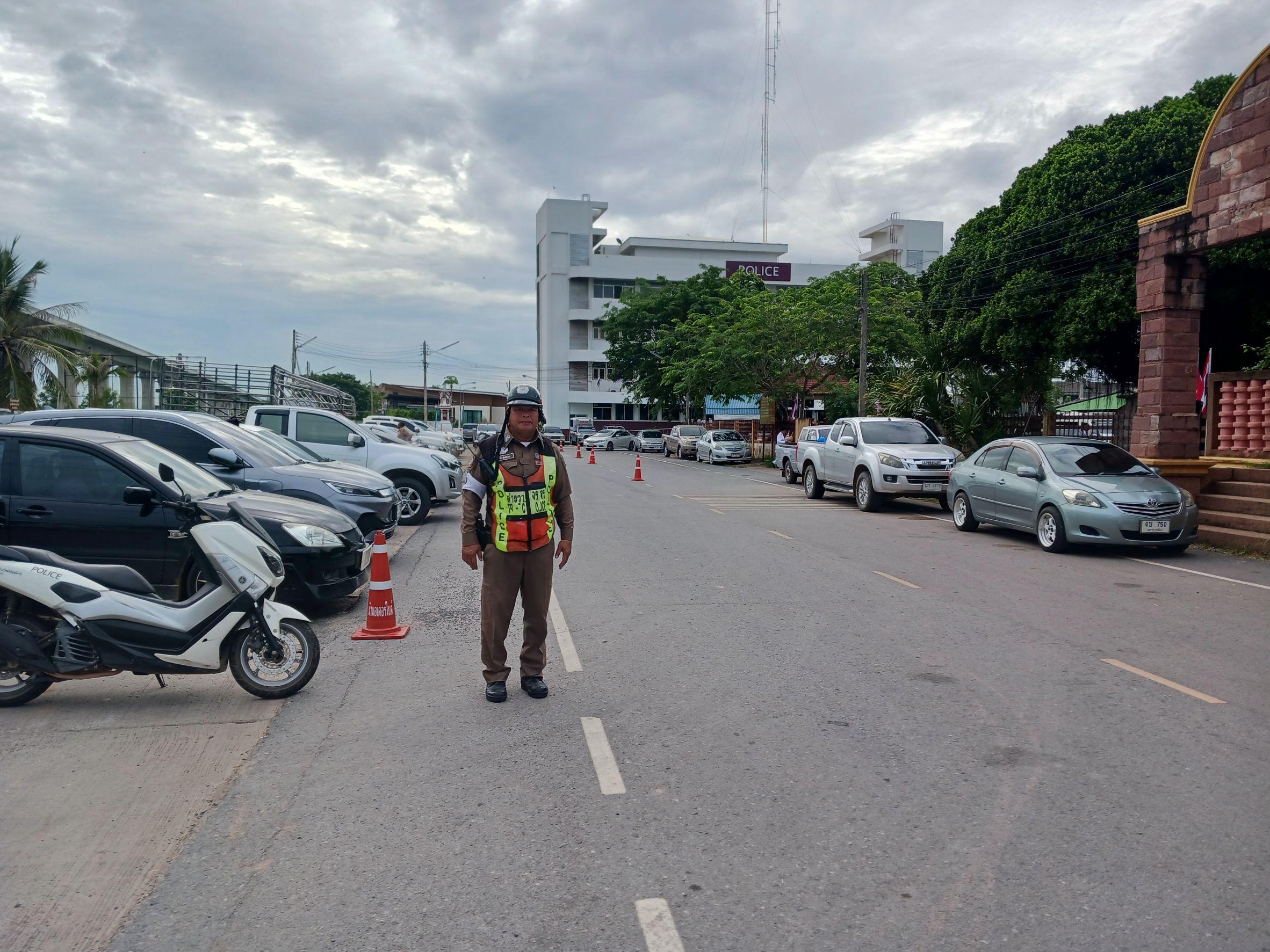 สน.60 พร้อมชุดจราจร.ว.4 อำนวยความสะดวกการจราจรหน้าทีว่าการอำเภอสูงเนิน เนี่องในวันเฉลิมพระชนพรรษษา