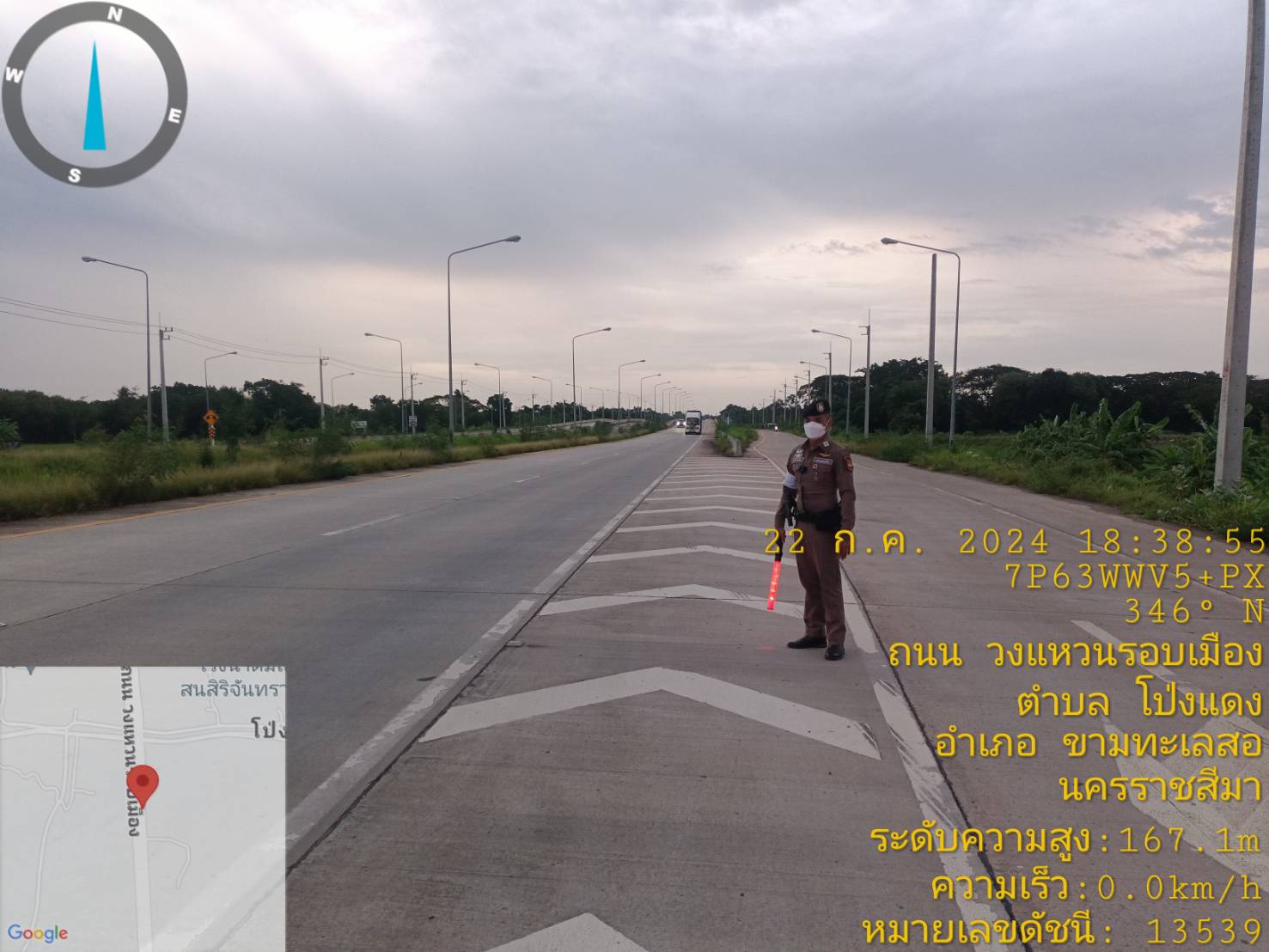 สถานีตำรวจภูธรสูงเนิน ขอรายงานถนนมิตรภาพจุดสะพานลอยหน้าบริษัทชีเกท กม.119 ในวันที่ 22 ก.ค.67 เวลาประ