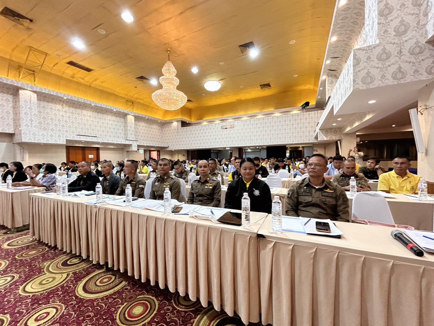 พ.ต.ท.ญาณวุฒิ ชินทุมพงษ์ สวป.สภ.สูงเนิน พร้อมเจ้าหน้าที่ที่เกี่ยวข้อง เฝ้าฟังการประชุมป้องกันการเเข่งรถในทางฯ ตร.