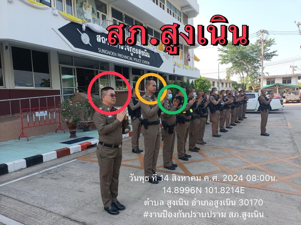 สภ.สูงเนิน ภ.จว.นครราชสีมา วันนี้ 14 สิงหาคม 2567 เวลา 08.00 น. พ.ต.อ.ศุภวัชร อังคสยาวัฒน์ ผกก.สภ.สู