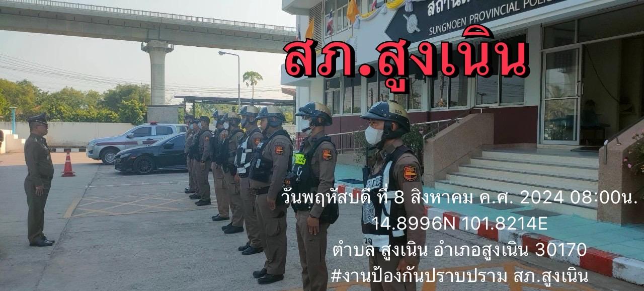 สภ.สูงเนิน ภ.จว.นครราชสีมา วันนี้ 8 สิงหาคม 2567 เวลา 08.00 น. พ.ต.อ.ศุภวัชร อังคสยาวัฒน์ ผกก.สภ.สูง